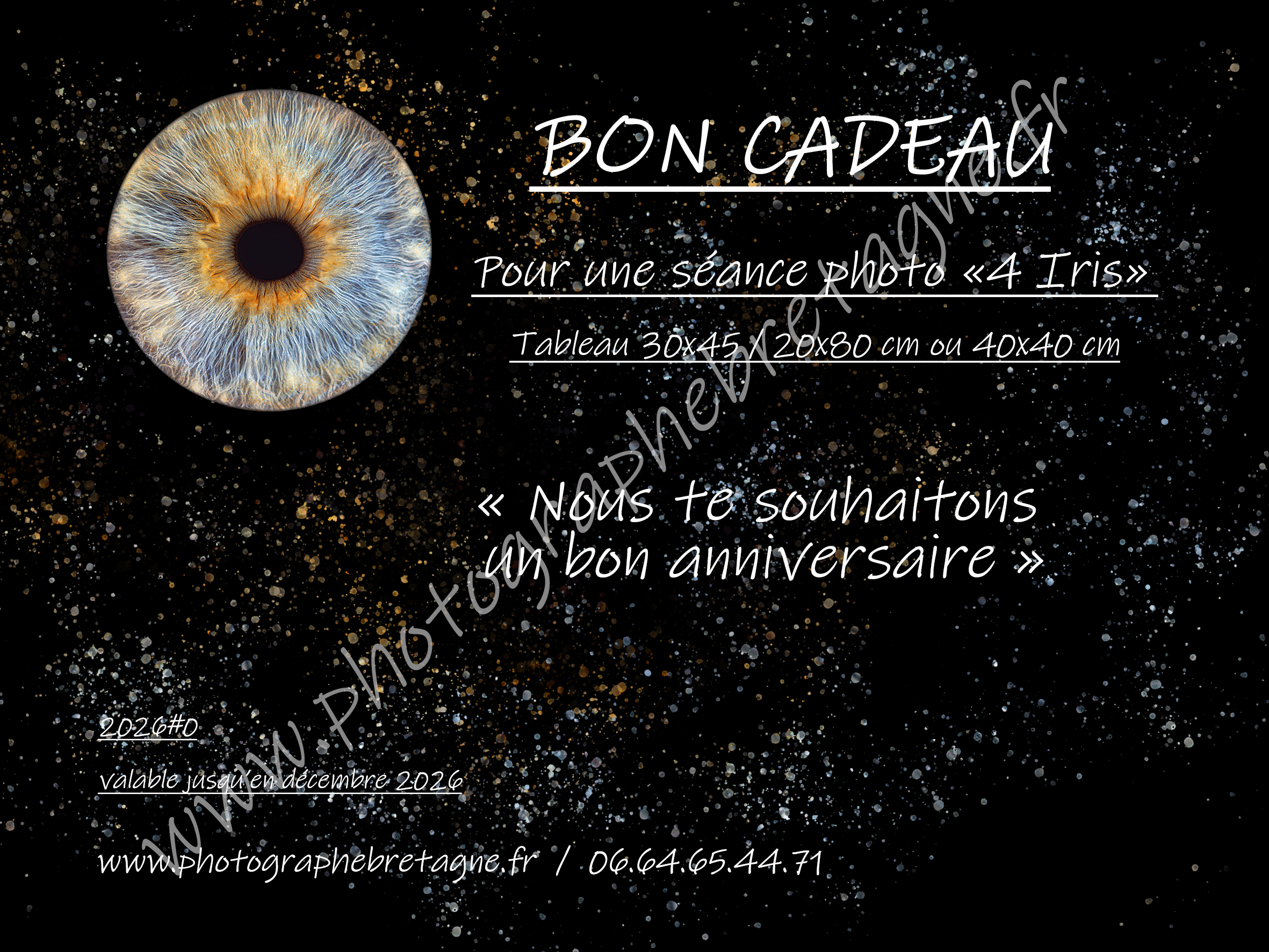 Pour les séances photo iris, famille, grossesse, enfants ou animaux, les conditions de déplacement sont calculées selon le lieu, sauf lorsque plusieurs prestations sont réalisées au même endroit, ce qui permet d’optimiser les frais.